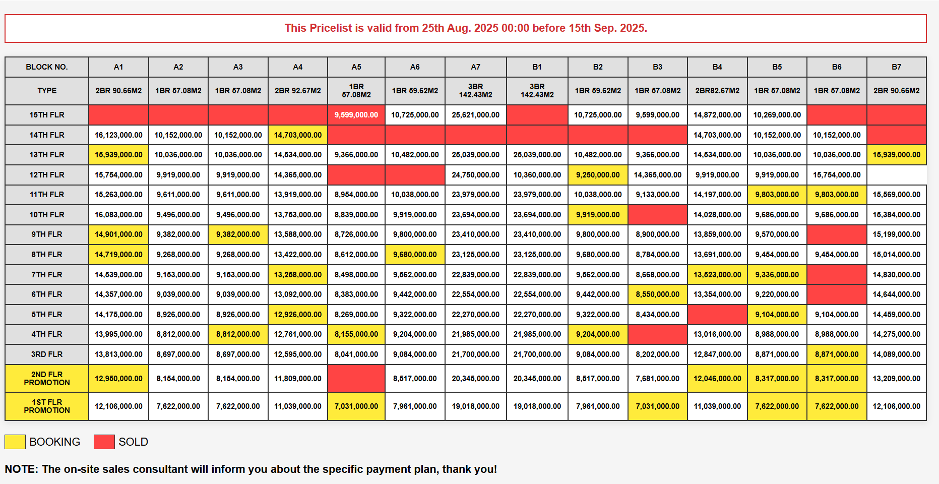 NOTE: The on-site sales consultant will inform you about the specific payment plan, thank you!