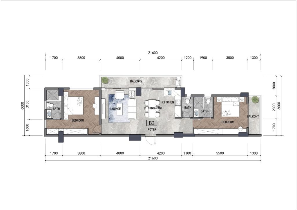 Choose from a variety of luxury apartments with different layouts and sizes: