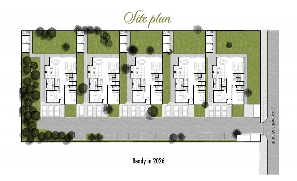 The property also provides a massive rear garden, side garden, and front garden, offering plenty of space for outdoor living. Each house has a minimum of three parking spots, with over a dozen visitor spots available.